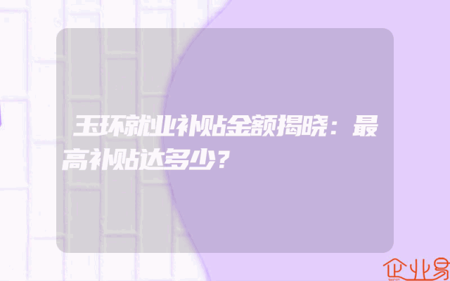 - 玉环就业补贴金额揭晓:最高补贴达多少?