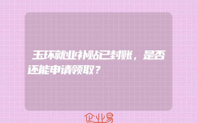 - 玉环就业补贴已封账,是否还能申请领取?