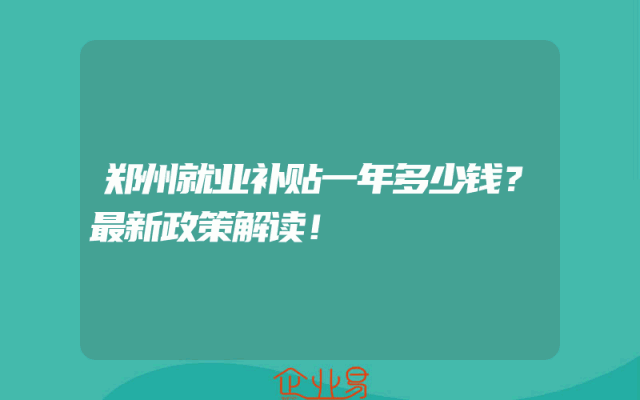 - 郑州就业补贴一年多少钱?最新政策解读!