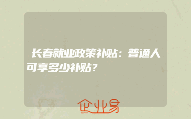 - 长春就业政策补贴:普通人可享多少补贴?