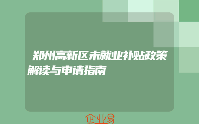 - 郑州高新区未就业补贴政策解读与申请指南