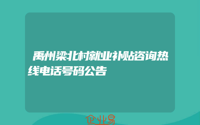 - 禹州梁北村就业补贴咨询热线电话号码公告