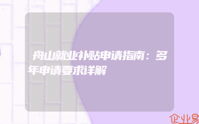 - 舟山就业补贴申请指南:多年申请要求详解