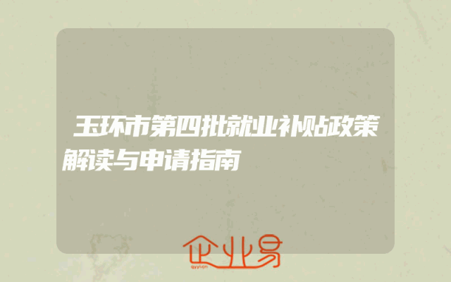 - 玉环市第四批就业补贴政策解读与申请指南