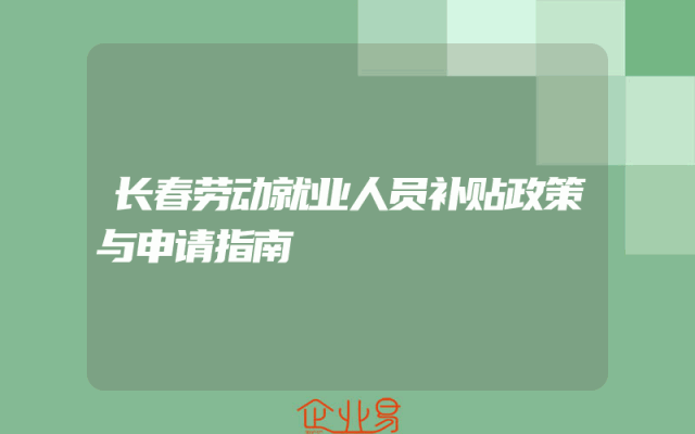 - 长春劳动就业人员补贴政策与申请指南