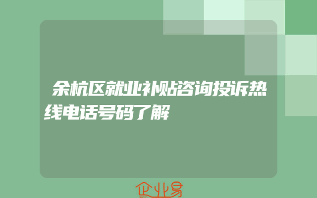- 余杭区就业补贴咨询投诉热线电话号码了解