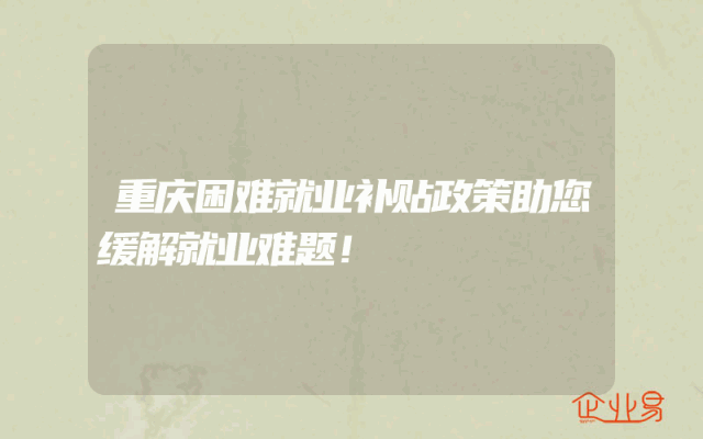 - 重庆困难就业补贴政策助您缓解就业难题!