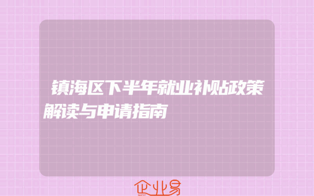 - 镇海区就业一次性补贴政策解析与申请攻略一、政策背景与目标镇海区为了鼓励就业创业,促进地方经济发展,制定了一系列就业一次性补贴政策。这些政策旨在支持劳动者就业,特别是针对高校毕业生、失业人员等重点群体,通过提供一次性的补贴,帮助他们顺利就业,