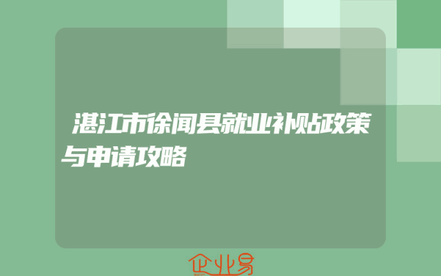 - 湛江市徐闻县就业补贴政策与申请攻略
