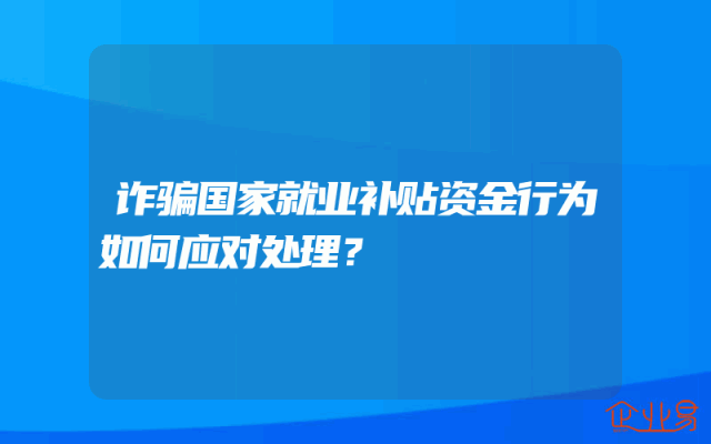 - 诈骗国家就业补贴资金行为如何应对处理?