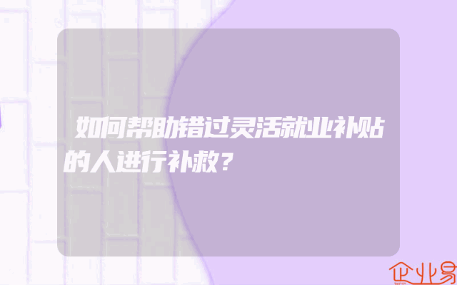 - 如何帮助错过灵活就业补贴的人进行补救?
