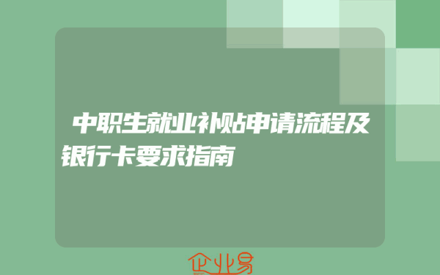 - 中职生就业补贴申请流程及银行卡要求指南一、补贴政策概述随着国家对职业教育重视程度的提升,为鼓励中职毕业生顺利就业,许多地区推出了针对中职生的就业补贴政策。这些补贴不仅有助于减轻学生就业初期的经济压力,也是对其职业技能与就业能力的肯定