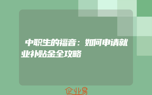 - 中职生的福音:如何申请就业补贴金全攻略一、了解就业补贴政策对于中职生而言,了解国家的就业补贴政策是申请就业补贴的第一步。目前,国家为了鼓励职业教育的发展和促进中职生的就业,出台了一系列的补贴政策。这些政策通常会针对特定的人群或特定的