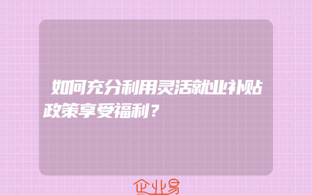 - 如何充分利用灵活就业补贴政策享受福利?
