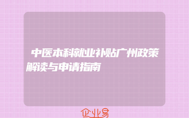 - 中医本科就业补贴广州政策解读与申请指南