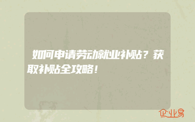 - 如何申请劳动就业补贴?获取补贴全攻略!
