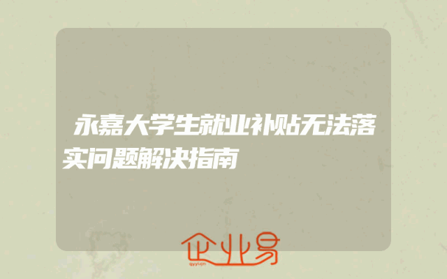 - 永嘉大学生就业补贴无法落实问题解决指南