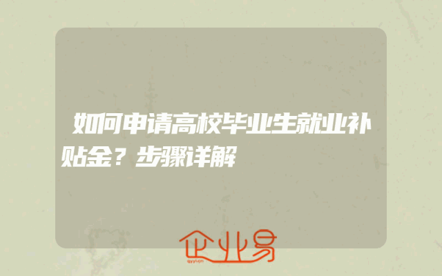 - 如何申请高校毕业生就业补贴金?步骤详解