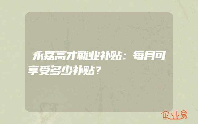 - 永嘉高才就业补贴:每月可享受多少补贴?