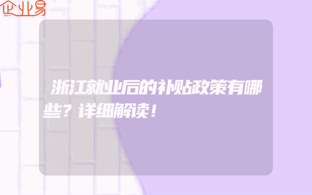 - 浙江就业后的补贴政策有哪些?详细解读!