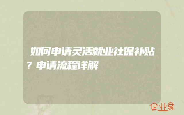 - 如何申请灵活就业社保补贴?申请流程详解