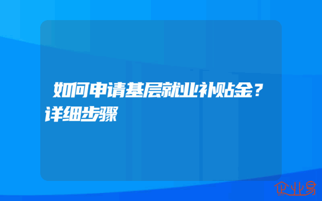 - 如何申请基层就业补贴金?详细步骤
