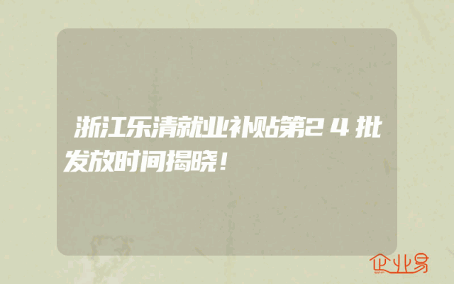 - 浙江乐清就业补贴第24批发放时间揭晓!