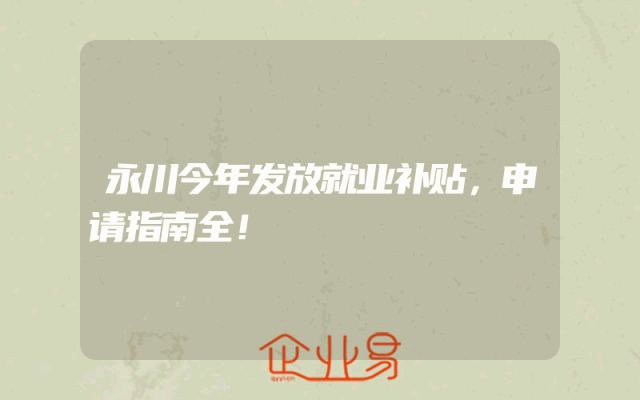 - 永川今年发放就业补贴,申请指南全!