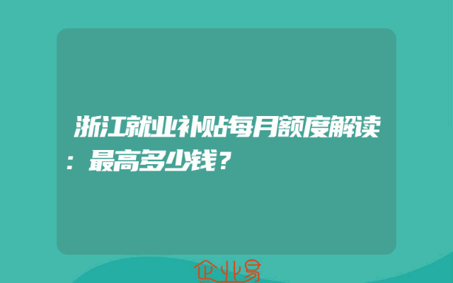 - 浙江就业补贴每月额度解读:最高多少钱?