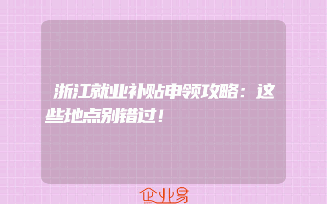 - 浙江就业补贴申领攻略:这些地点别错过!