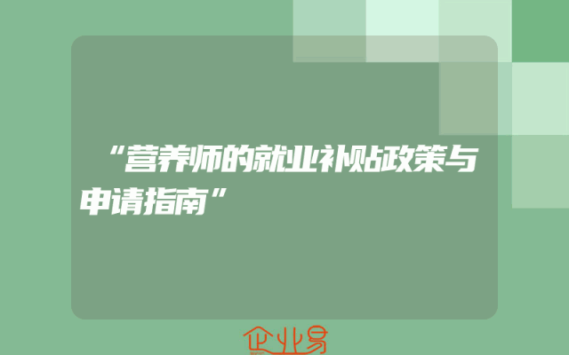 - 营养师的就业补贴政策解析与申请指南一、当前我国营养师就业现状及其补贴政策背景就业现状与市场前景随着健康意识的提升,营养师作为一种新兴职业,在社会大众生活中的地位越来越重要。随着经济的发展和生活水