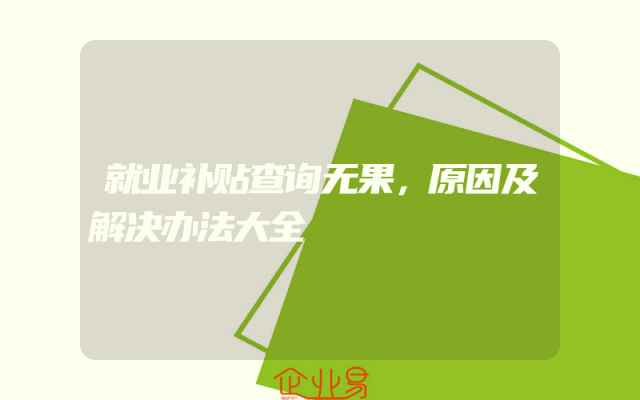 - 就业补贴查询无果:原因及解决办法大全一、查询无果的原因分析在申请就业补贴过程中,查询无果是一个常见的问题。这种情况可能由多种原因造成。首先,可能是因为申请信息填写不准确。个人信息、申请流程、申请条件等任何环节的失误都可能导致查询无果。例如,