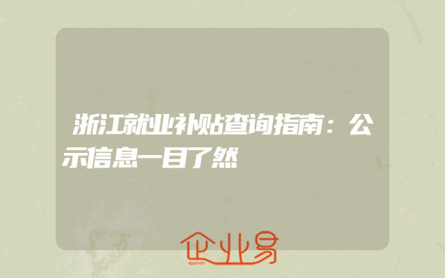 - 浙江就业补贴查询指南:公示信息一目了然一、前言随着国家对就业工作的重视与支持,各类就业补贴逐渐成为求职者关注的热点话题。对于浙江省的求职者来说,如何便捷地查询就业补贴信息成为了重要需求。本文将为大家