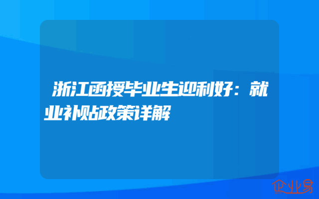 - 浙江函授毕业生迎利好:就业补贴政策详解