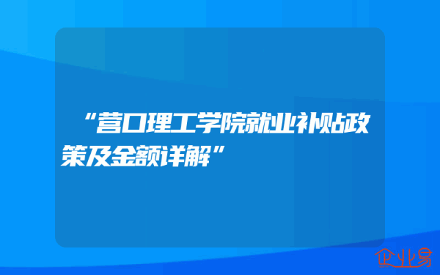 - 营口理工学院就业补贴政策及金额详解一、引言随着我国教育的普及和高校扩招,大学生就业压力逐渐增大。为了支持大学生的就业创业,各级政府和社会各界纷纷出台了一系列优惠政策。营口理工学院作为一所优秀的高等学府,其就业补贴政策也备受关注。二、就业补贴