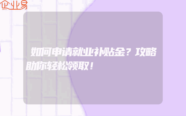 - 如何申请就业补贴金?攻略助你轻松领取!