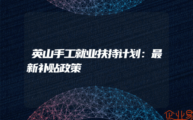 - 英山手工就业扶持计划:最新补贴政策