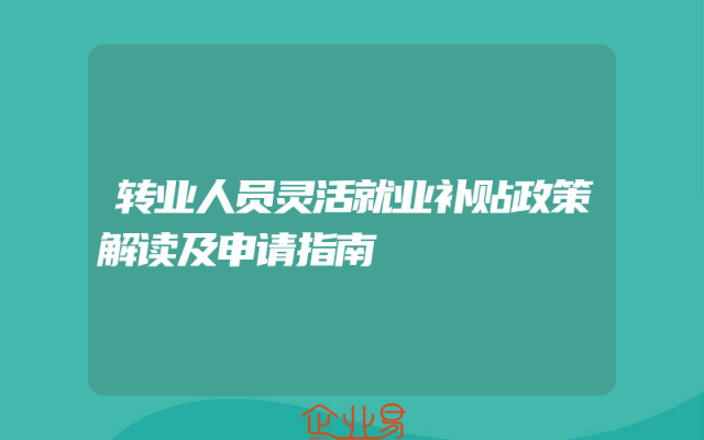 - 转业人员灵活就业补贴政策解读及申请指南