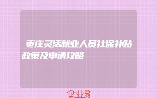 - 枣庄灵活就业人员社保补贴政策及申请攻略