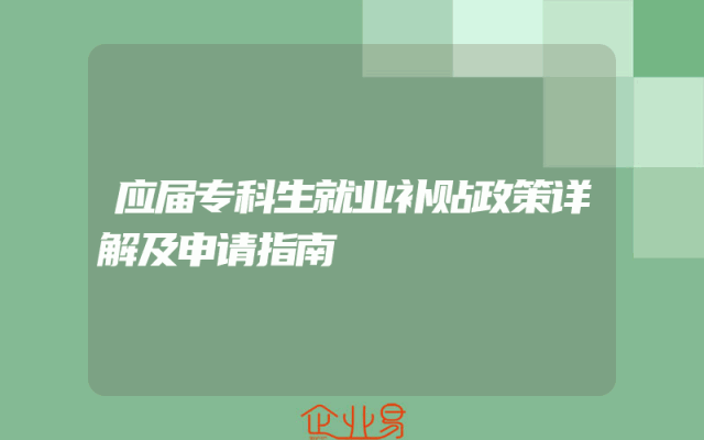 - 应届专科生就业补贴政策详解及申请指南