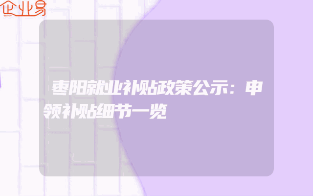 - 枣阳就业补贴政策公示:申领补贴细节一览