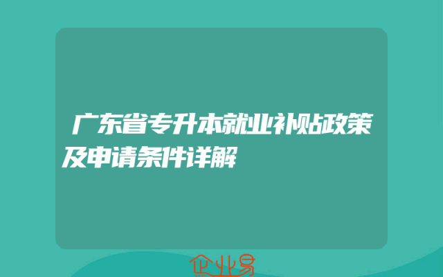 - 广东省专升本就业补贴政策及申请条件详解
