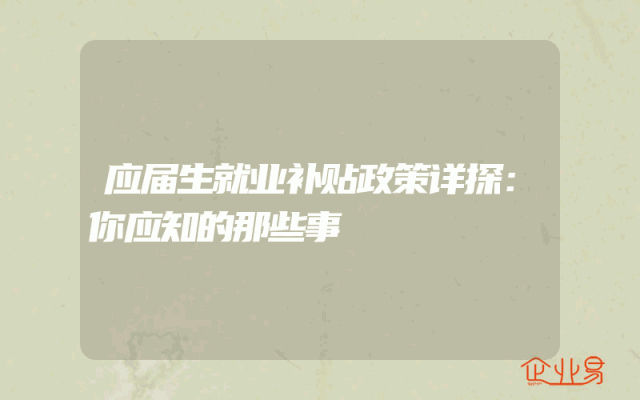 - 应届生就业补贴政策详探:你应知的那些事