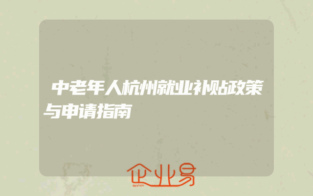 - 中老年人杭州就业补贴政策与申请指南
