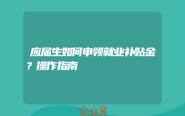- 应届生如何申领就业补贴金?操作指南