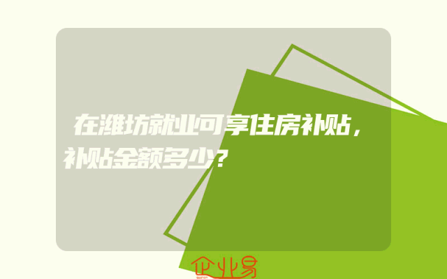 - 在潍坊就业可享住房补贴,补贴金额多少?