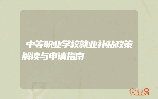 - 中等职业学校就业补贴政策解读与申请指南一、政策背景及意义近年来,国家高度重视职业教育的发展,中等职业学校作为培养技术技能人才的重要基地,其毕业生的就业情况直接关系到国家产业结构的优化和社会经济的发展。为了进一步推动中等职业教育与劳动力市场的