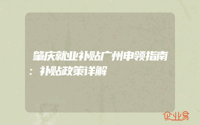 - 肇庆就业补贴广州申领指南:补贴政策详解