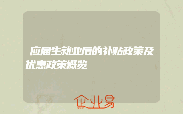 - 应届生就业后的补贴政策及优惠政策概览一、就业补贴政策的重要性对于刚刚踏出校门的应届生而言,了解就业后的补贴政策及优惠政策是顺利融入社会、开展职业生涯的关键一环。这些政策旨在帮助新生职场人解决生活和工作中的实际困难,促进社会稳定与经济发展。二