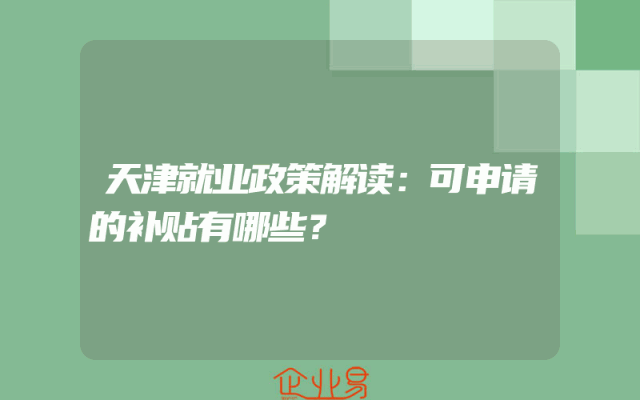 - 天津就业政策解读:可申请的补贴有哪些?一、天津市就业政策概述天津市作为中国的北方经济中心,为了促进就业和经济发展,制定了一系列就业政策。这些政策不仅为求职者提供了广阔的就业机会,还为企业提供了诸多支持。其中,各类补贴政策是天津市吸引人才、促